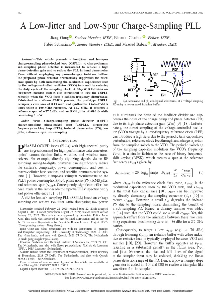 A LowJitter and LowSpur ChargeSampling PLL PDF